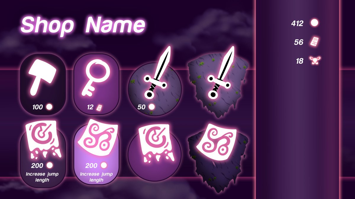 - 2D graphics for several screens to make them look more interesting than a block of colour.